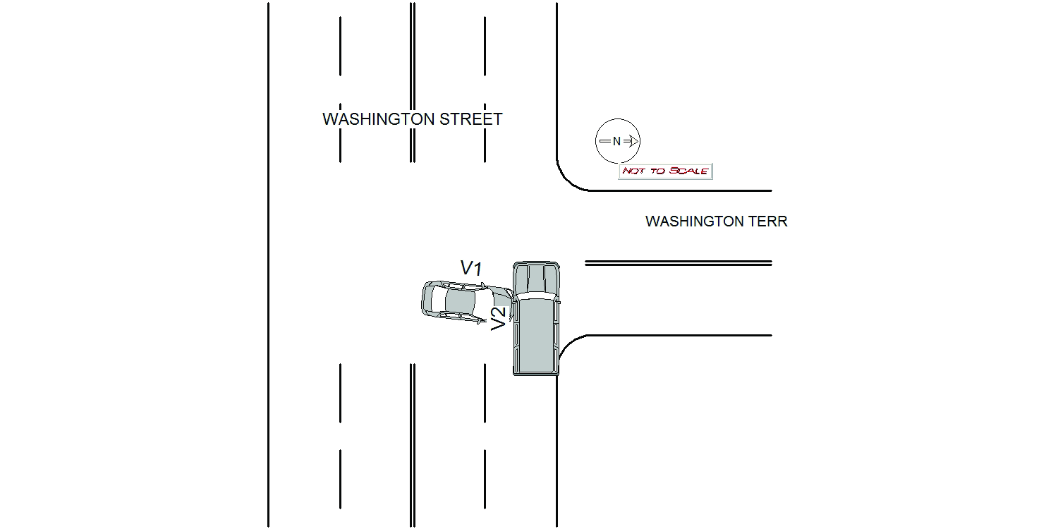 Operator of V1 stated she was traveling east on Washington Street, turned left onto Washington Terr and had contact with V2. Operator of V2 stated she just pulled out of the parking space on the westbound lane of Washington Street she was traveling straight and V1 turned into her vehicle. All parties advised of the process, and there were no reported injuries.