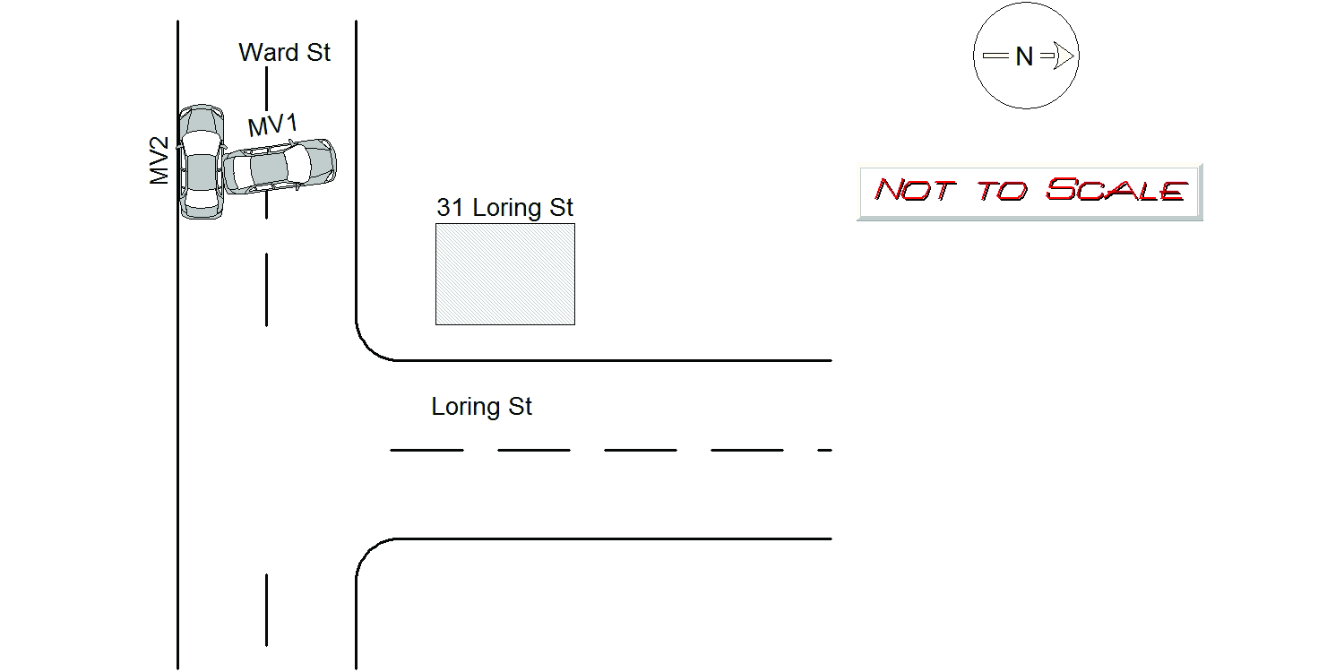 On May 23, 2022 at approximately 16:28 hours I responded to the area of Ward St at Loring St for a two car motor vehicle crash. Upon arrival, all parties were on scene and out of their vehicles. It was determined that MV1 was backing out of the driveway of 31 Loring St, which is on Ward St and backed into MV2, which was parked facing westbound in the eastbound lane. There was visible damage on MV1's Rear Passenger side bumper and visible damage on MV2's passenger side. It should be noted that the passenger side mirror had existing damage prior to the crash. I spoke with the owner of MV2, who was aware of the crash and I advised her that her vehicle was parked facing the wrong direction. I informed the involved both parties that a crash report would be on file and how to obtain it.