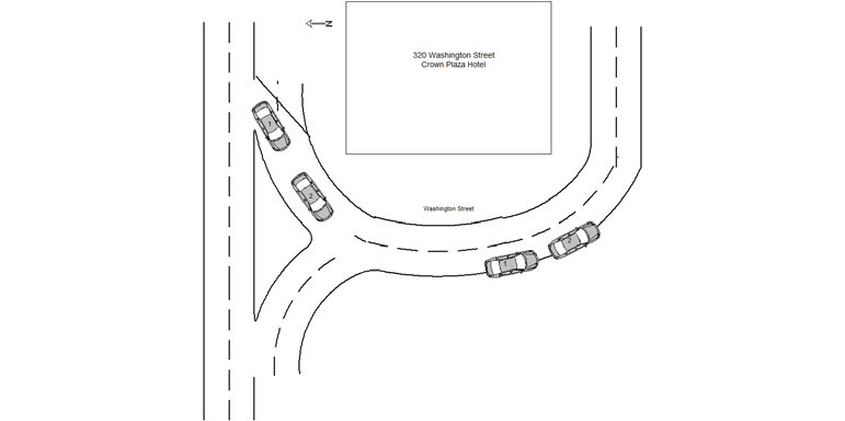 Veh #1, operated by Mr. Jimmy Wen was traveling west on Washington Street around the Crown Plaza Hotel. Veh #2, operated by Ms. Patricia Witt was traveling in the same direction in front of Veh #1. As Veh #2 turned southerly on Washington Street into the rotary, Veh #1 struck the rear of Veh #2. Mr. Wen was asked why he drove into the rear of Veh #2 and he replied, "I do not know".
