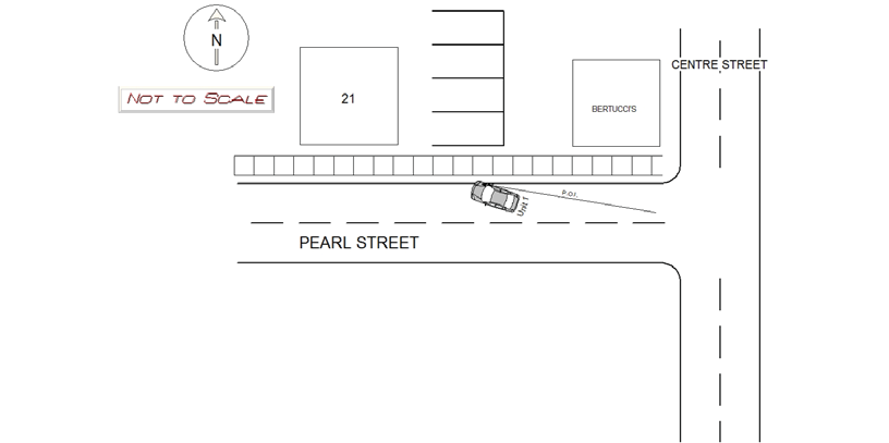 On 09/21/20 at 14:46 hours, I (Traffic Unit # 523) responded to the parking lot of 88 Chestnut Street for a motor vehicle accident involving a pedestrian. The weather at the time was 60 degrees ( localconditions.com) and the sky was clear and sunny. The road surface was dry. The parking lot is a thru way that the public use to enter/exit the lot or park there. On arrival at the same time with the Fire and Medics, I observed a female laying in the middle of the lot facing down on her back. A small red and gray CVS like type shopping carriage was knocked over and resting on it's side in front of the victim's head. The carriage was moved to the side in order to tend to the victim I also observed a black Honda Civic bearing MA reg.# 3741TW that was involved in the accident. The Honda was out of the parking spot resting approximately two feet away from the pedestrian's legs. I then spoke to the pedestrian identified as Darla Gipson in the rear of the ambulance. She sustained an abrasion to her front left shoulder and arm area which I observed. She also complained of left knee and elbow pain. She stated that she walking through the middle of the parking lot pushing the carriage by the door entrance in a westerly direction towards Chestnut Street. She states that she never saw a vehicle backing up and then she was suddenly struck and believes she was pushed underneath the vehicle. She was then transported to Newton Wellesley Hospital by Cataldo Ambulance. I then spoke to the operator of the Honda Civic identified as Linda Burke (MA S70320414). Ms. Burke was parked in the first spot to the right of the walkway that leads to the entrance/exit doorway. I asked her what occurred and she stated that she was backing her vehicle up to exit the parking lot when she looked behind her not seeing anything in sight. She then started backing up and struck the pedestrian without realizing it. She says the driver of a green cab and his female customer who were no longer on scene were yelling at her to stop her vehicle because the pedestrian was underneath it. She then stopped her vehicle. I observed minor scrapes to the entire rear bumper of the vehicle so it is unknown where it actually struck the pedestrian/carriage. I observed no obvious signs of damage to the carriage. It should be noted that Ms. Burke's Honda does not have a back up camera or back up sensors. There are no surveillance cameras to the apartment complex and no witnesses came forward for the accident. As a result of the investigation, Ms. Burke will be issued Uniform Citation # T1271069 for Newton City Ordinance 19-75 Failure To Use Care in Backing. Digital photos were taken by me of the scene.