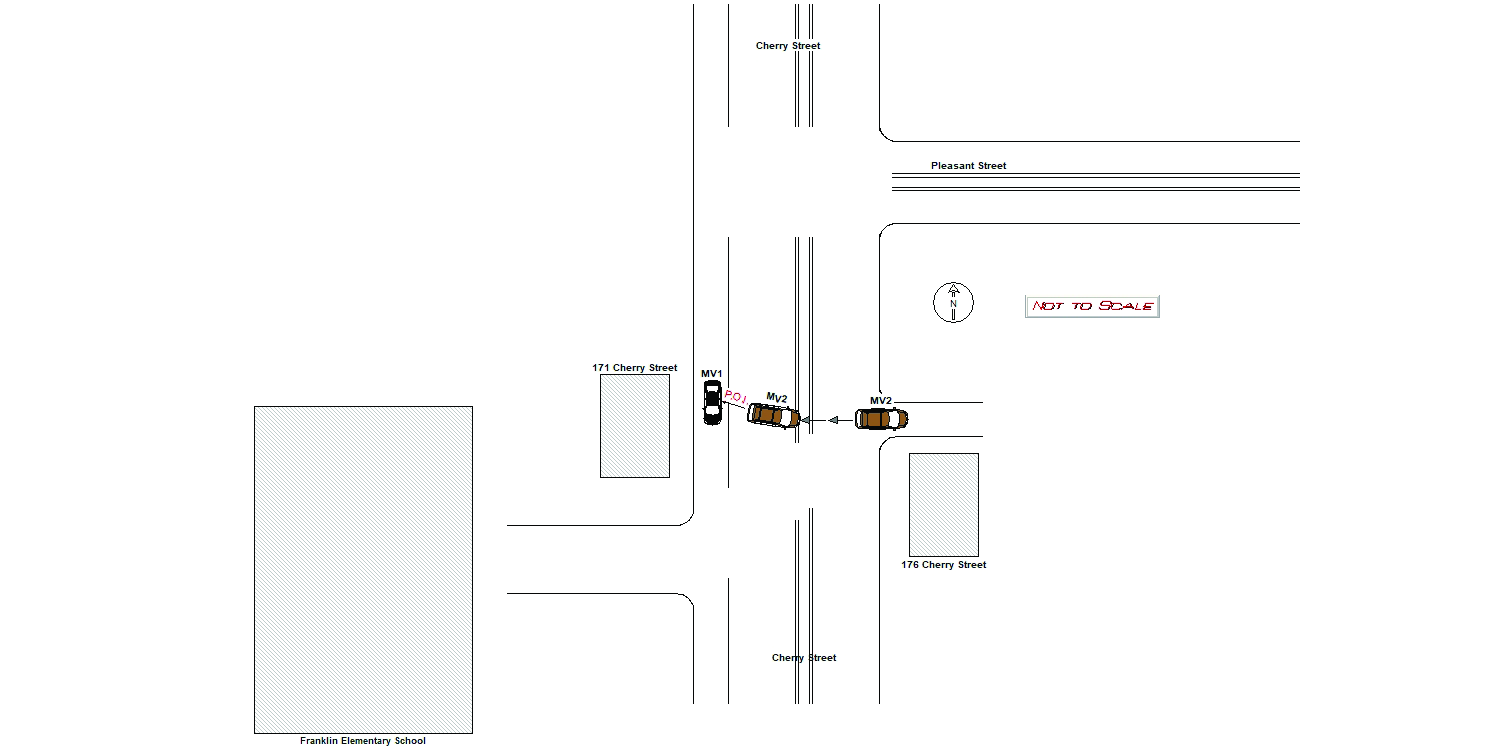 Unknown operator of MV2 (unknown registration number) pulled into the driveway of 176 Cherry Street. When backing onto Cherry Street, MV2 struck MV1 (MA. registration 789EK4) which was parked and unattended in front of 171 Cherry Street. Witness Emily Fagerstrom described MV1 as a tan colored Toyota mini van but was unable to note a registration number. Witness states MV2 then left the scene.