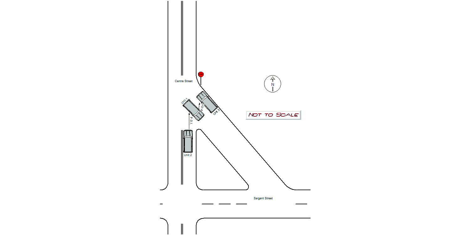 MV1 was traveling south on Centre Street. MV1 took a left turn prior to the island to turn east onto Sargent Street. MV2 was traveling north on Centre Street and struck the right side of MV1, causing MV1 to roll onto its left side. Subsequently pushing MV1into MV3. MV3 was pushed over the curb and up onto the sidewalk area. MV3 was at the stop sign, waiting to take a right onto Centre Street to travel northbound. All three operators state the same consistent story. All patients signed refusals with the exception of the operator of MV3 who was transported to NWH. All three vehicles towed by Tody's.