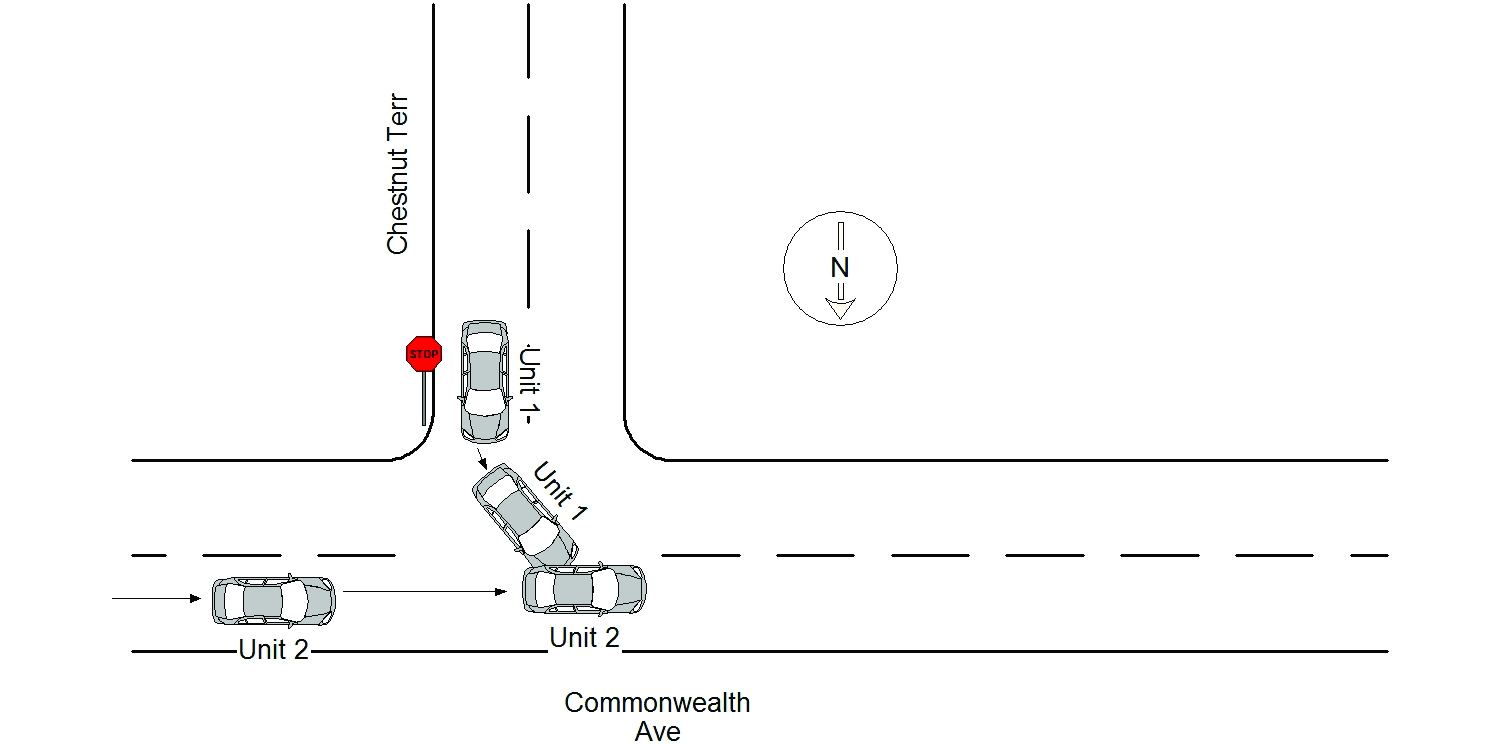Operator 1 was pulling left onto Commonwealth Ave from the stop sign on Chestnut Terr when she struck the drivers side of vehicle 2. Operator 2 was traveling westbound on Commonwealth Ave when he was struck on the drivers side by vehicle 1 as she was pulling onto Commonwealth Ave. Neither vehicle required a tow and neither operator reported any injuries.