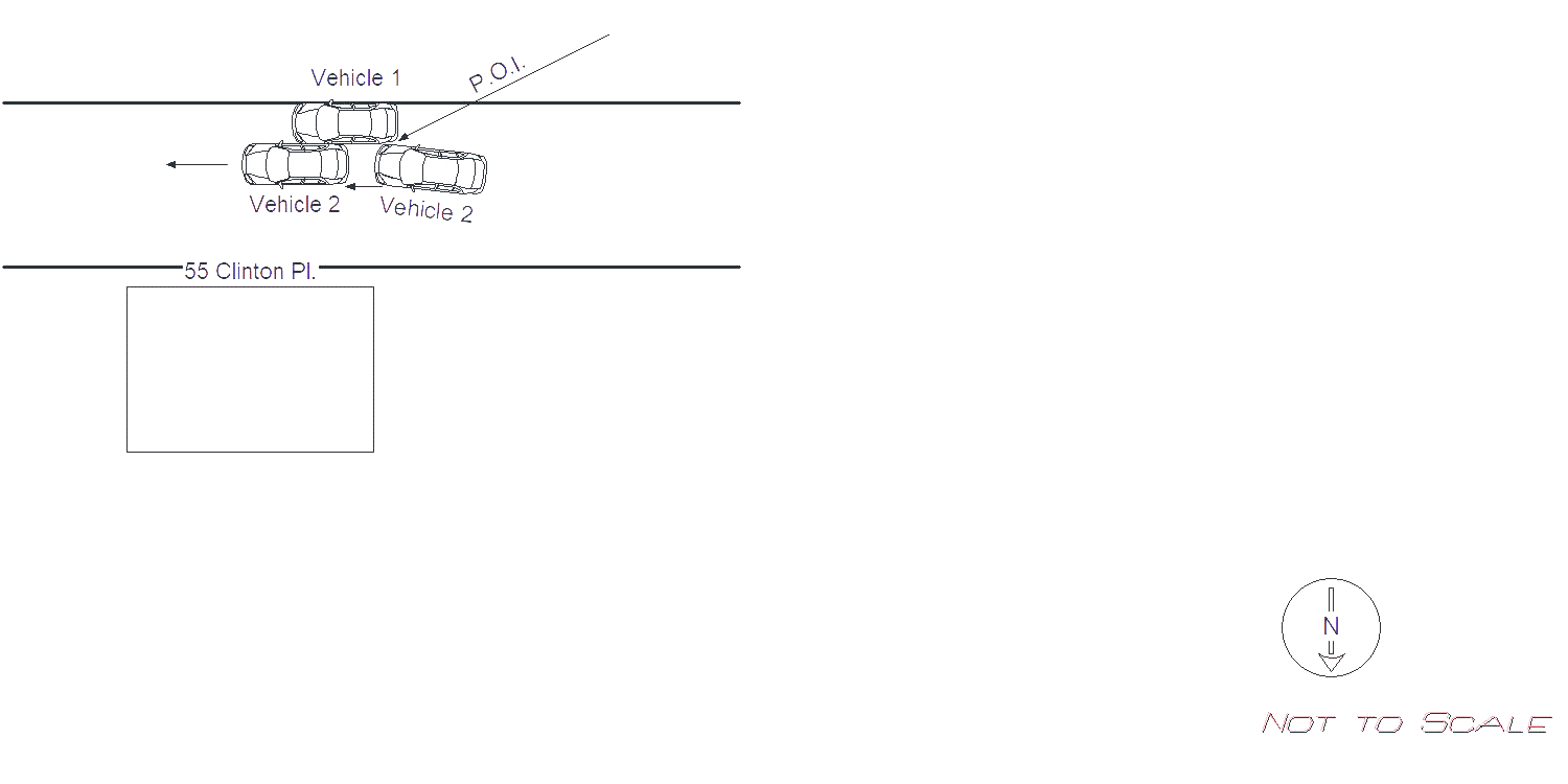 Vehicle 1 was unoccupied and legally parked in front of 55 Clinton Pl. Vehicle 2 appeared to be traveling West on Clinton Pl. and collided with it's passenger side into Vehicle 1's driver side. Vehicle 2 appeared to continue driving west after the collision scraping the entire driver side of Vehicle 1. Vehicle 1 sustained significant damage to its entire driver side and front driver side wheel. Vehicle 1 did not to be towed from the scene. There is no information on Vehicle 2.